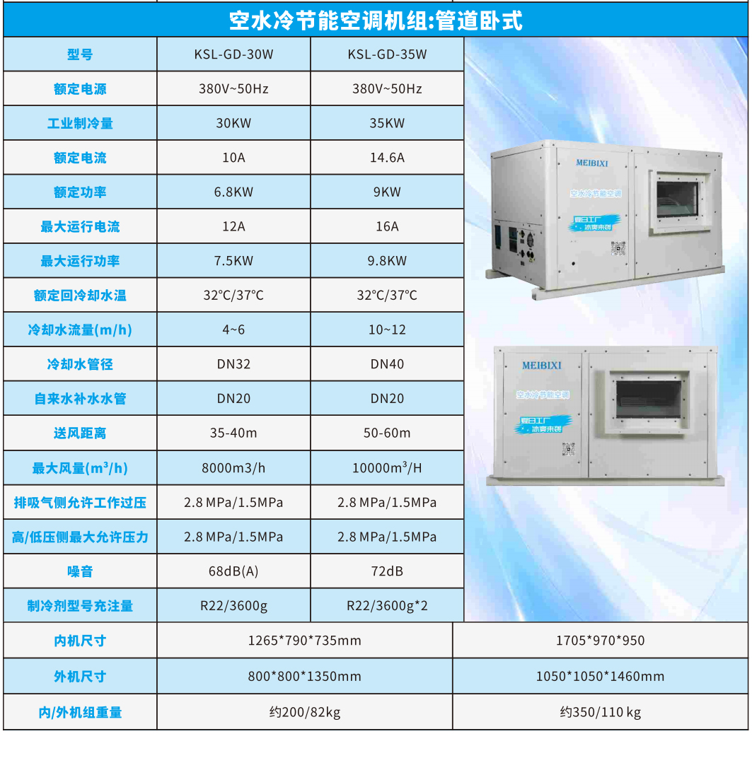 空水冷节能空调机组:管道卧式