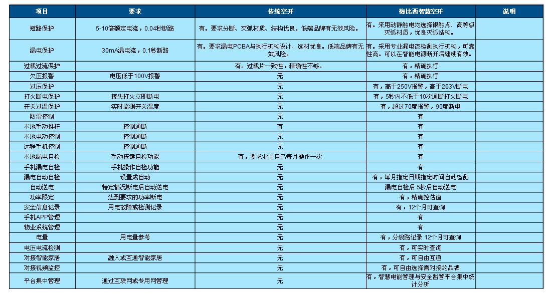 智能断路器具备短路、漏电、过流、过载、打火、过压、欠压等保护功能, 漏保功能自检、功率限定、电量计算;